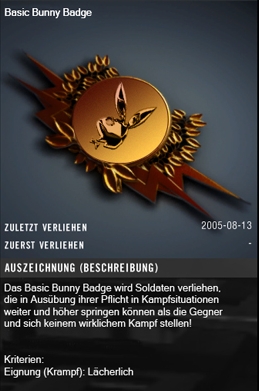 Das mag sein, aber trotzdem hoppeln doch die meisten dort herum, als wenn jeden Tag Ostern wäre!St0rmw4rner wrote:Wer sich durch mehrfache Sprünge dem Beschuss entziehen will ist ein Bunnyhopper. Das ist meiner Meinung nach nicht ok und oft - wenn auch nicht immer - auf Public Ranked Servern verboten.
