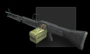 Das M60 wird als leichtes Maschinengewehr eingestuft, kann aber mit seinem 100-Schuss-Gurt erhebliche Schäden anrichten. Es feuert 7,62mm Patronen ab und war seit 1950 das Allzweck-Maschinengewehr des amerikanischen Militärs. Seinen Spitznamen "Das Schwein" erhielt es wegen seiner grunzenden Geräusche, die es beim Abfeuern von sich gibt.